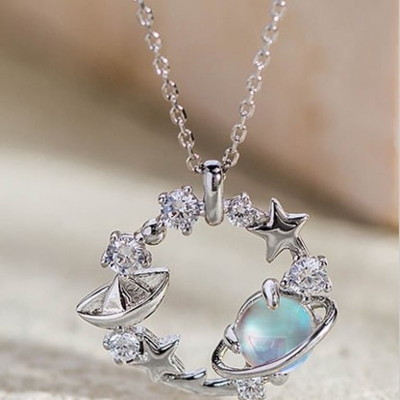 Collar con colgante de cadena de clavícula de plata 925 con dise?o de planeta Lianlian y piedra de cristal azul de Fanci Fan Qi